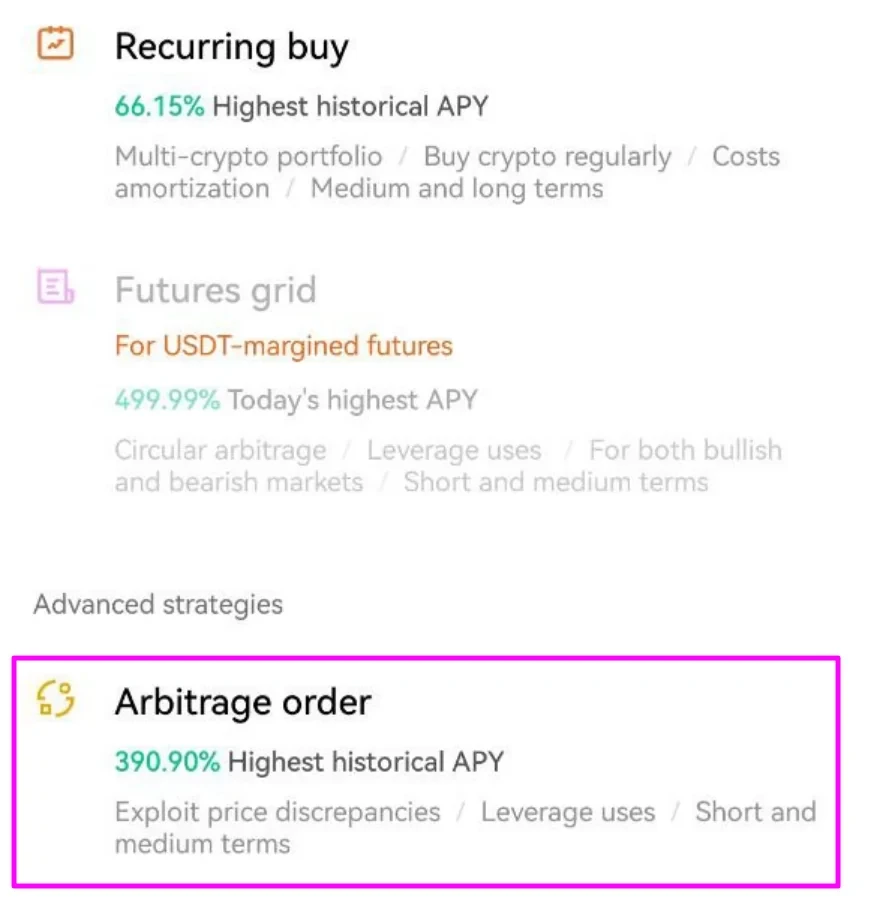 OKX’s trading bot features a mode to simplify placing orders to take advantage of arbitrage opportunities between different trading instruments. This tutorial will focus on the arbitrage order trading bot, which is just one of our powerful automated trading strategies. To learn more about our other crypto trading bots, check out this dedicated guide